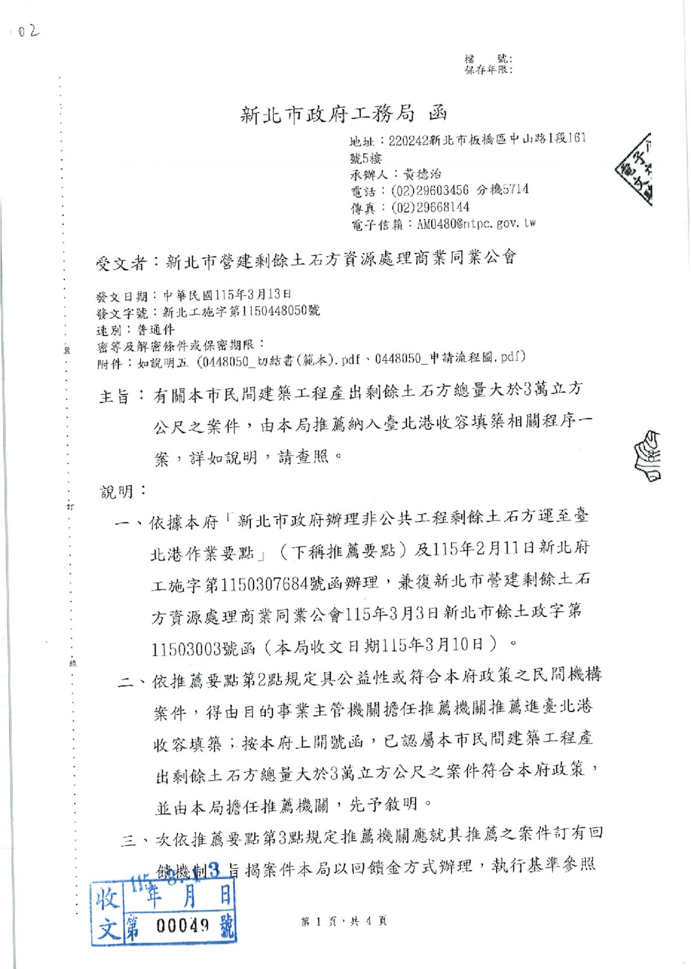 PDF下載:民間建築工程土石方總量大於3萬推薦納入 台北港收容相關程序公文